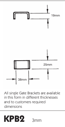 Designed for versatility, the KPB2 bracket can be used in new gate fabrication as well as repair or reinforcement work. The straight, square profile allows it to sit flush against gate frames or posts, ensuring consistent spacing and dependable load transfer. This bracket is available in multiple thicknesses and can be supplied to customer-specified dimensions on request. Also see our full collection of gate brackets here.