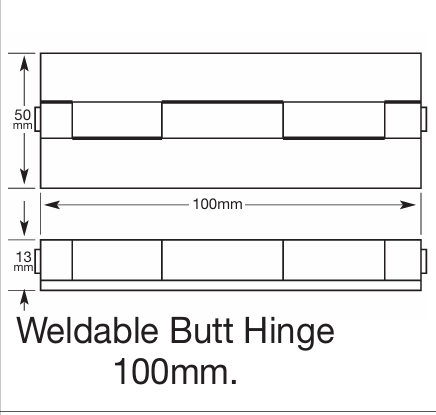 - Weld-on steel butt hinge for permanent installations