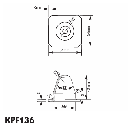 - 54 × 54 mm square base with 40 mm overall height