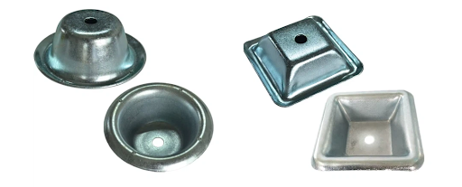 Round pallet feet are often pressed or formed from steel into a dome or cup shape. This curved design can provide good structural strength due to its natural arch form.